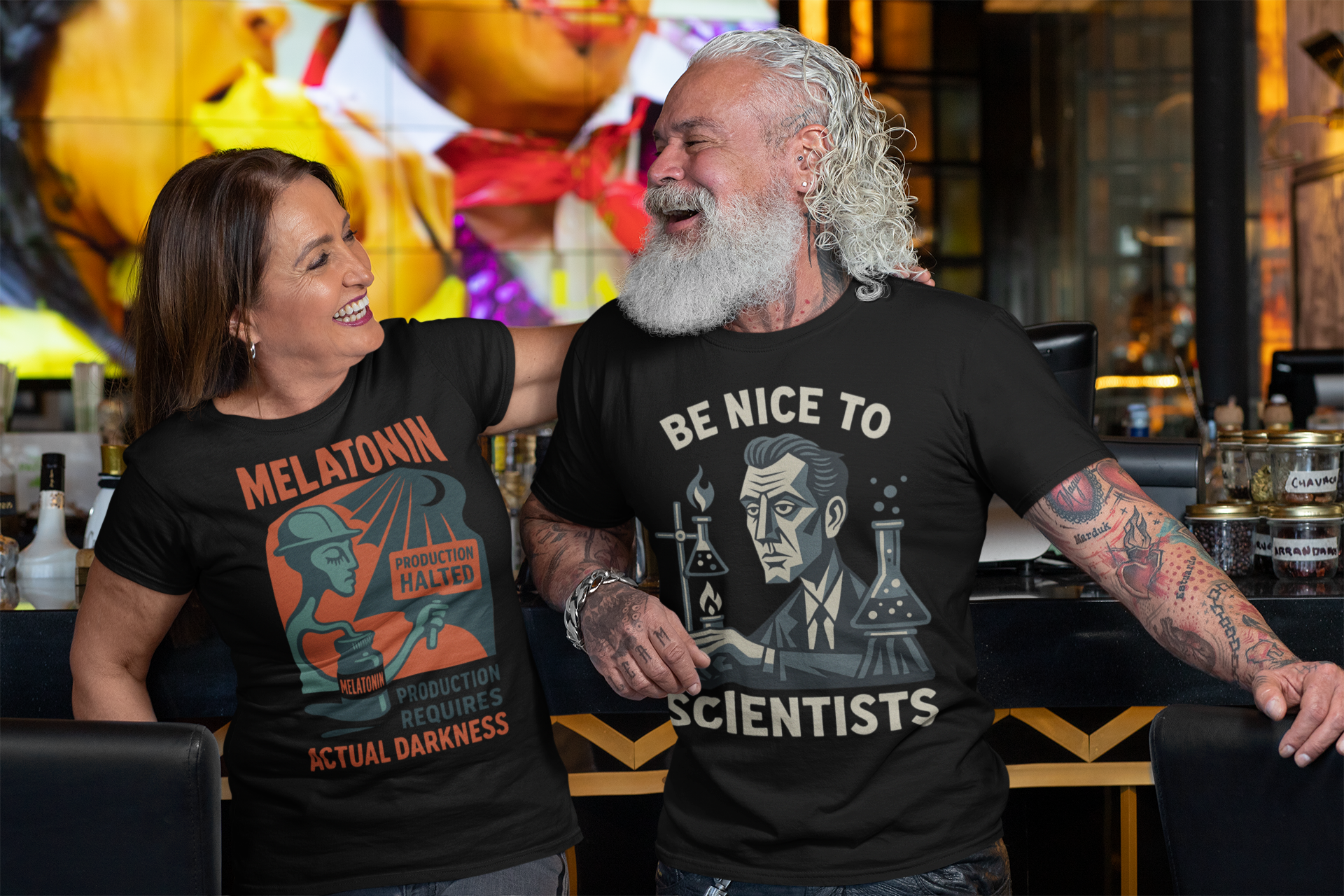 We've weaponized wit into wearable form, creating t-shirts that function as both fashion statement and cognitive filter. Each shirt transforms complex scientific principles into visual jokes that separate those who get the reference from those who'll need to Google it later. Intelligence has never been this stylish—or this likely to make strangers at coffee shops desperately want to know where you shop.